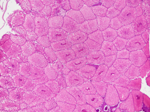 ウィルス感染や寄生虫に侵された組織切片標本の作製をおこないます。餌料の違いによる体細胞の変化調査、冷凍による肉質変化調査などのための標本作製依頼にも対応しております。