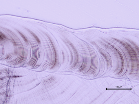アユは成魚になると300本以上の輪紋(日齢)が出現します。