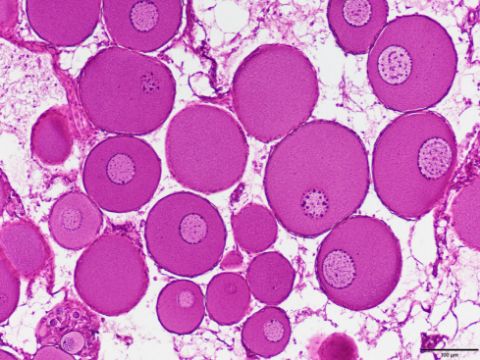 放流前のサケ稚魚に孵化場で独自のマーキングを耳石に行います。再捕した魚の耳石を調べることにより放流場所を特定することが出来ます。